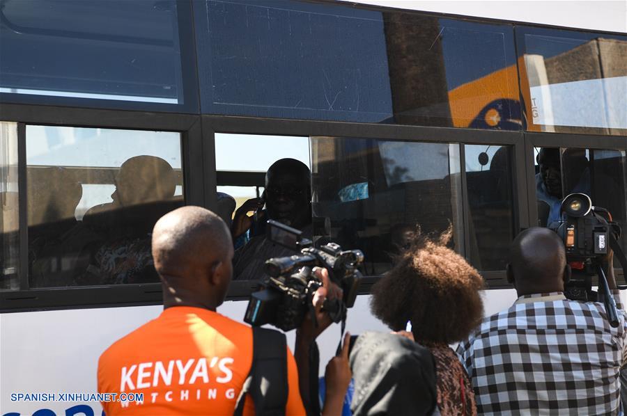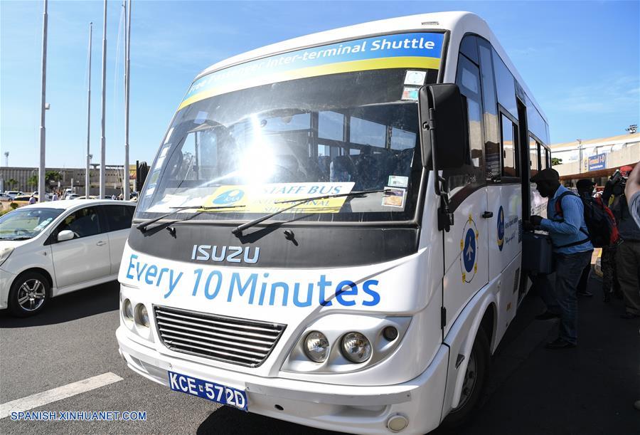 Familiares de las víctimas del vuelo ET302 de Ethiopian Airlines toman un autobús de enlace a un hotel para esperar más información, en el Aeropuerto Internacional Jomo Kenyatta, en Nairobi, capital de Kenia, el 10 de marzo de 2019. Ethiopian Airlines confirmó la muerte de las 157 personas a bordo del vuelo con destino a Nairobi, Kenia, que se estrelló la ma?ana del domingo. Las 157 personas a bordo del ET 302 incluían a ciudadanos de más de 30 países, confirmó en conferencia de prensa el director general de Ethiopian Airlines Group, Tewolde Gebremariam. (Xinhua/Li Yan)