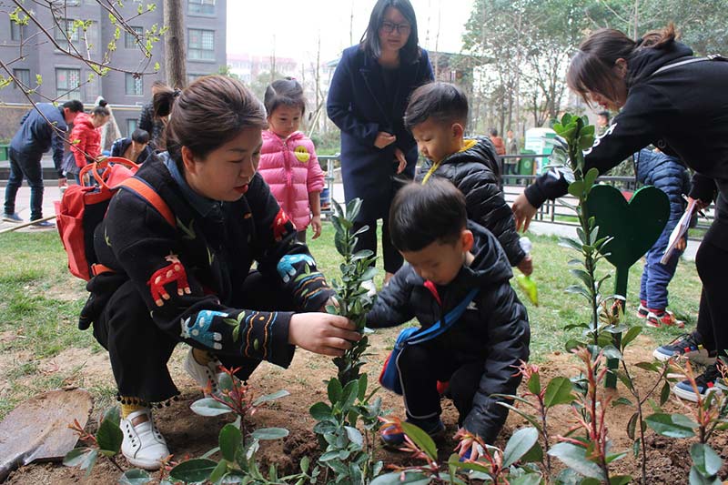 El 10 de marzo de 2019, los residentes de la comunidad de Haolin Fangli, distrito de Lianhu en de Xi'an, provincia de Shaanxi, participaron activamente en las actividades de plantación de árboles en el parque. (Wu Kuanhong / Diario del Pueblo)