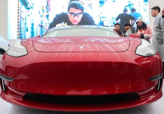 El modelo 3 de Tesla se exhibe durante la ceremonia de inauguración de la fase I del proyecto de la fábrica de Tesla en Shanghai.