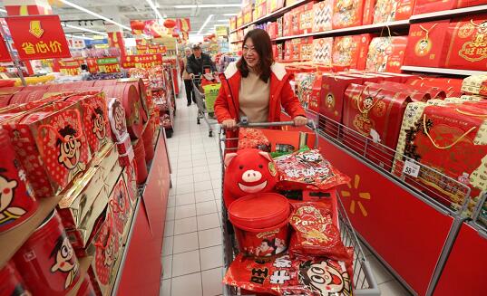 Una cliente hace compras para el Festival de Primavera en un Walmart, en Kunming, en la provincia de Yunnan, el 24 de enero de 2019.