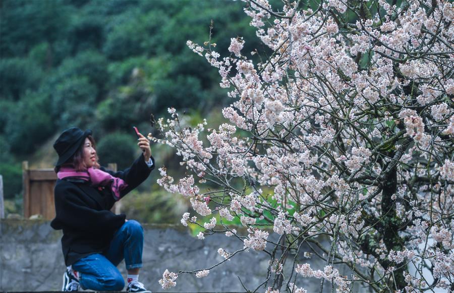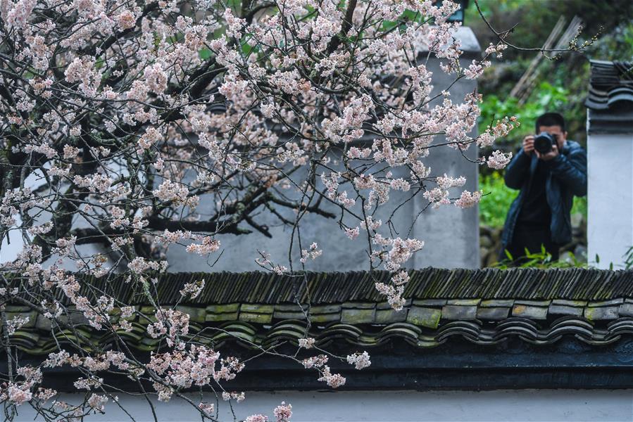 ZHEJIANG, 14 marzo, 2019 (Xinhua) -- Vista de las flores de cerezo, en la villa de Qianyuan del municipio de Sandu en Jiande, provincia de Zhejiang, en el este de China, el 14 de marzo de 2019. (Xinhua/Xu Yu)