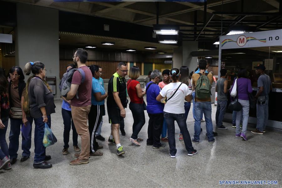 Personas esperan en fila para comprar boletos del metro, en Caracas, Venezuela, el 14 de marzo de 2019. Venezuela reanudó este jueves actividades laborales tras la restitución de 100 por ciento del sistema eléctrico. (Xinhua/Str)