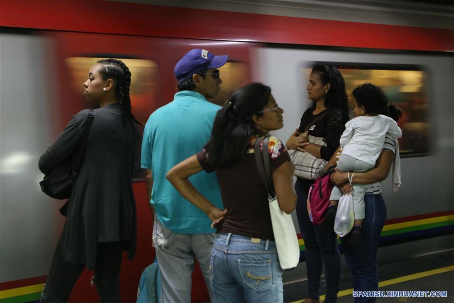 Personas esperan en una estación del metro para abordar un tren, en Caracas, Venezuela, el 14 de marzo de 2019. Venezuela reanudó este jueves actividades laborales tras la restitución de 100 por ciento del sistema eléctrico. (Xinhua/Str)