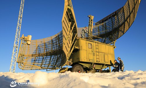 Soldados asignados a una estación de radar de la fuerza aérea bajo el comando Sur del Ejército Popular de Liberación comprueban el sistema de radar después de una gran nevada, 20 de diciembre del 2018. (Foto: Xu Hangchuan/ eng.chinamil.com.cn)