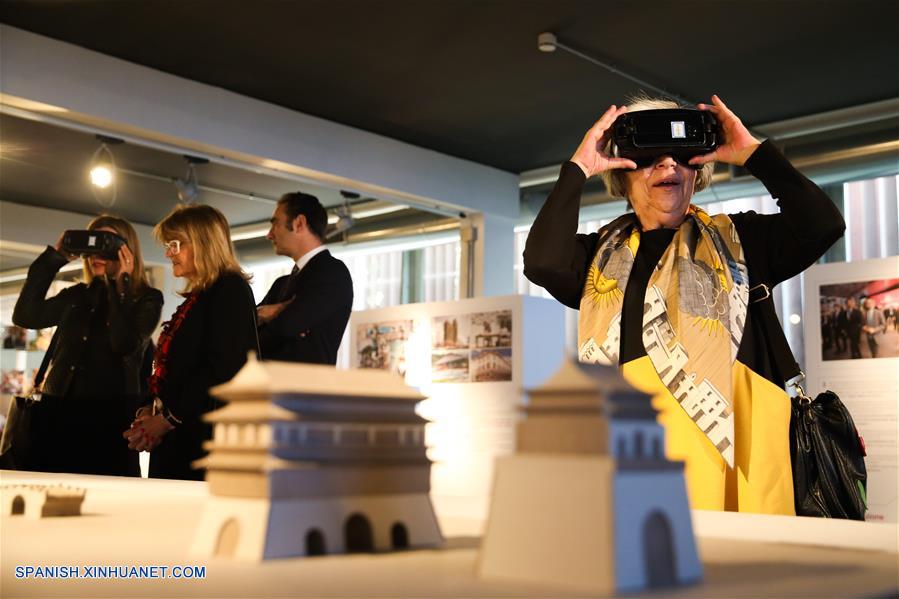 ROMA, 22 marzo, 2019 (Xinhua) -- Una visitante observa las imágenes en la exposición llamada "Viaje Fotográfico a China: Ciudades y Ciudadanos", en Roma, Italia, el 22 de marzo de 2019. La exposición muestra fotografías que incluyen panorámicas de Realidad Virtual (RV) que destacan los intercambios culturales y de negocios entre China e Italia, el desarrollo de las ciudades chinas y la vida del pueblo chino. (Xinhua/Zheng Huansong)