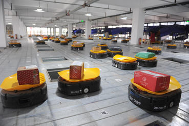 Robots organizan paquetes en un centro de clasificación de ZTO Express en la Zona de Desarrollo Yingdong de Fuyang, en la provincia de Anhui, 14 de noviembre del 2018. (Foto: Pueblo en Línea)