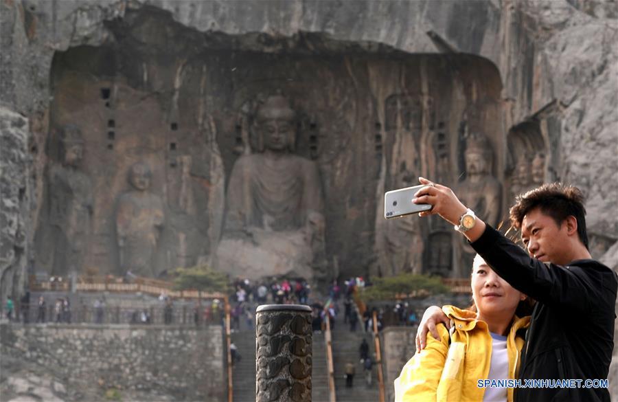 HENAN, 26 marzo, 2019 (Xinhua) -- Personas se toman fotografías el área escénica de las Grutas de Longmen, en Luoyang, de la provincia de Henan, en el centro de China, el 26 de marzo de 2019. (Xinhua/Li An)