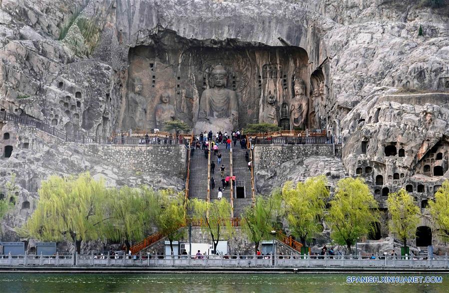 HENAN, 26 marzo, 2019 (Xinhua) -- Personas visitan el área escénica de las Grutas de Longmen, en Luoyang, de la provincia de Henan, en el centro de China, el 26 de marzo de 2019. (Xinhua/Li An)