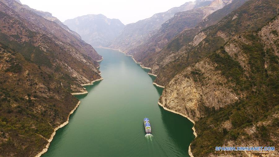 CHONGQING, 27 marzo, 2019 (Xinhua) -- Imagen del 26 de marzo de 2019 de un buque navegando en la Garganta Wuxia, una de las Tres Gargantas sobre el Río Yangtze, en el condado de Wushan de la municipalidad de Chongqing, en el suroeste de China. (Xinhua/Wang Quanchao)