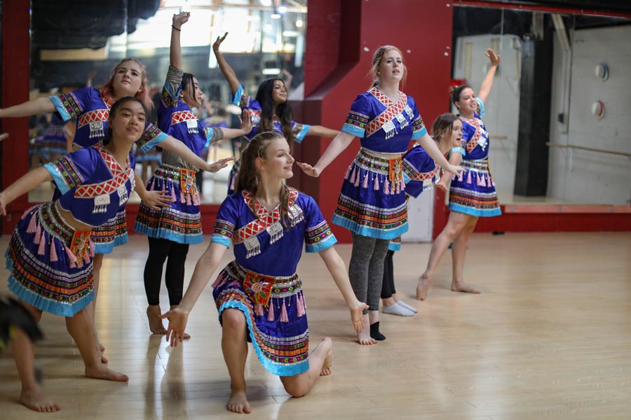 Varias estudiantes aprenden un baile tradicional chino de la etnia Miao en la Academia de Danza Oriental en Wellington, el 22 de marzo de 2019. [Foto / Chinaculture.org]