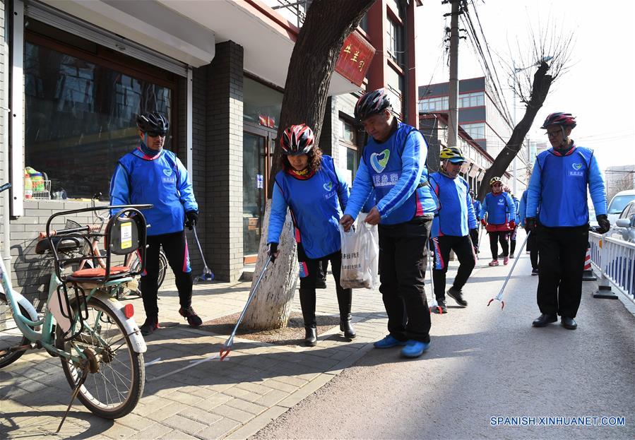 BEIJING, 29 marzo, 2019 (Xinhua) -- Voluntarios para la Exposición Internacional de Horticultura asean una calle, en Yanqing de Beijing, capital de China, el 29 de marzo de 2019. Un total de 20.000 voluntarios serán reclutados de 47 instituciones superiores, 60 compa?ías y 16 distritos para cubrir todo el evento. (Xinhua/Ren Chao)