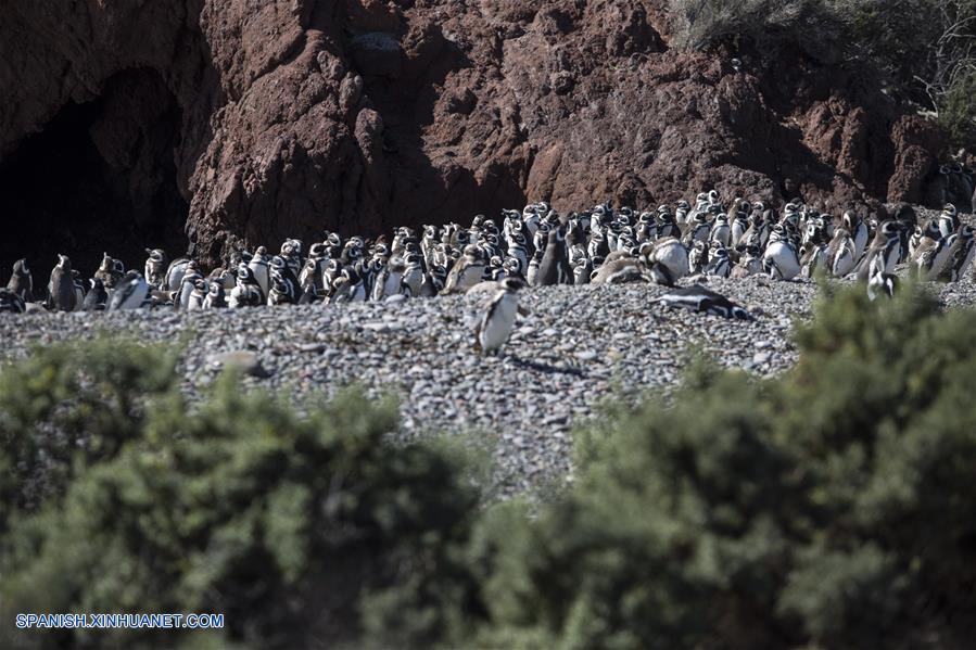 CHUBUT, 1 abril, 2019 (Xinhua) -- Imagen del 28 de marzo de 2019, de pingüinos de Magallanes caminando en el Area Natural Protegida Punta Tombo, en la provincia de Chubut, Argentina. Con la llegada del oto?o a la Patagonia argentina, los pingüinos de Magallanes, las aves marinas más abundantes de la costa atlántica sur y unas de las mayores atracciones turísticas de la zona, se preparan para emigrar a las aguas de Brasil luego de haber cumplido su fase reproductiva. (Xinhua/Martín Zabala)