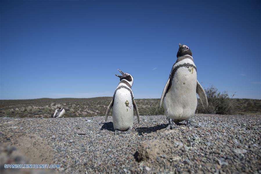 CHUBUT, 1 abril, 2019 (Xinhua) -- Imagen del 28 de marzo de 2019, de pingüinos de Magallanes caminando en el Area Natural Protegida Punta Tombo, en la provincia de Chubut, Argentina. Con la llegada del oto?o a la Patagonia argentina, los pingüinos de Magallanes, las aves marinas más abundantes de la costa atlántica sur y unas de las mayores atracciones turísticas de la zona, se preparan para emigrar a las aguas de Brasil luego de haber cumplido su fase reproductiva. (Xinhua/Martín Zabala)