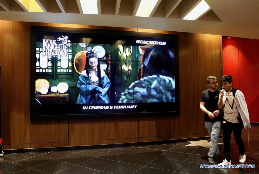 BAGDAD, 1 abril, 2019 (Xinhua) -- Imagen del 25 de marzo de 2019 de personas descansando frente a una pantalla que muestra una película del actor chino, Jackie Chan, en un cine en el centro de Bagdad, Irán. A finales de marzo, una nueva película china en la que actúa Jackie Chan fue estrenada en los cines de Bagdad, atrayendo a aficionados que esperaron ansiosos por el artista marcial. (Xinhua/Khalil Dawood)