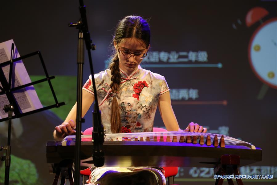 BUCAREST, 2 abril, 2019 (Xinhua) -- Una concursante toca un instrumento durante la competencia "Puente Chino", en Buarest, Rumania, el 2 de abril de 2019. De acuerdo con información de la prensa local, la edición 18 del "Puente Chino" de Rumania, una competencia anual china para estudiantes universitarios extranjeros, se llevó a cabo en Bucarest el martes, con Paula Sorina, de la Universidad de Bucarest, como la ganadora del Gran Premio. (Xinhua/Chen Jin)