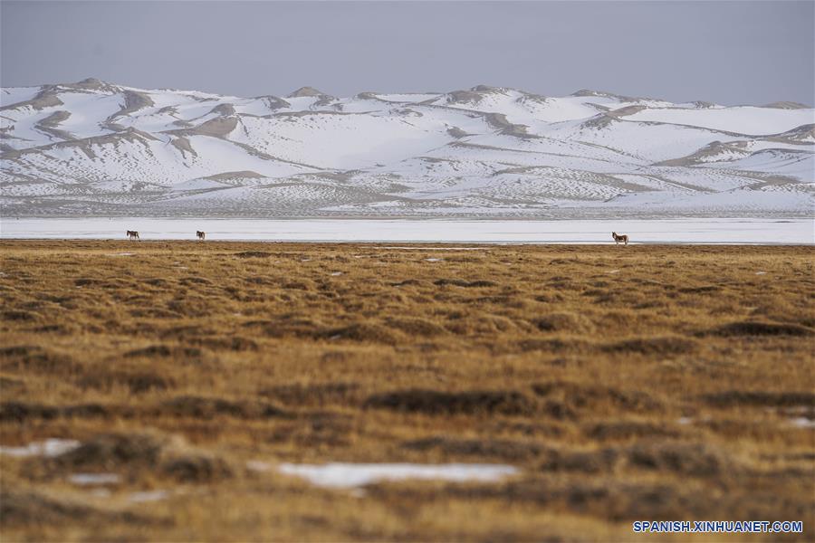 XINJIANG, 4 abril, 2019 (Xinhua) -- Imagen del 1 de abril de 2019 de una vista de los kiangs en la Reserva Natural Nacional de las Monta?as de Altun, en la región autónoma de la etnia uygur de Xinjiang, en el noroeste de China. (Xinhua/Hu Huhu)