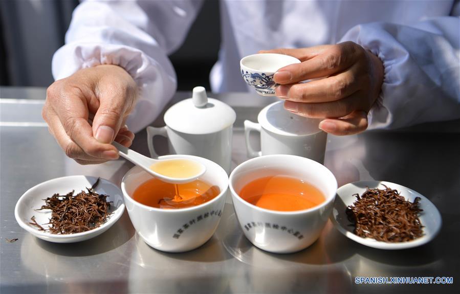 HUBEI, 7 abril, 2019 (Xinhua) -- Imagen del 6 de abril de 2019, del fabricante de té Qiu Jianhong preparándose para probar té negro de Lichuan, en la ciudad de Lichuan, en la provincia de Hubei, en el centro de China. (Xinhua/Yang Shunpi)