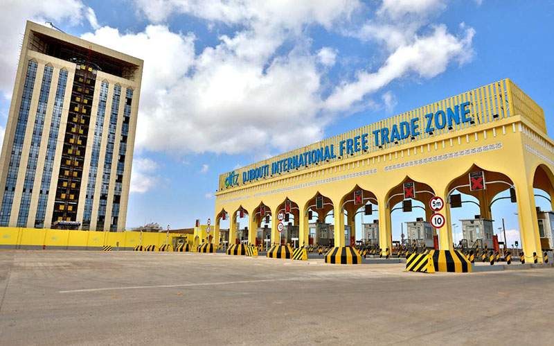 La Zona de Libre Comercio Internacional de Djibouti, financiada por China y que comenzó su construcción en enero de 2017, se inauguró el 5 de julio de 2018.