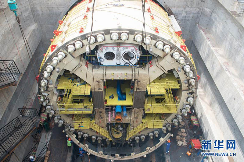 El trabajo intensivo para construir el túnel No 1 de la estación del tren de alta velocidad Yakarta-Bandung en Halim está en marcha durante todo el día para montar una enorme máquina de perforación de túneles el 20 de marzo de 2019. [Foto / Xinhua]