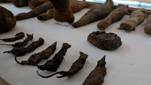 Encuentran decenas de ratones, gatos y halcones momificados en una tumba egipcia