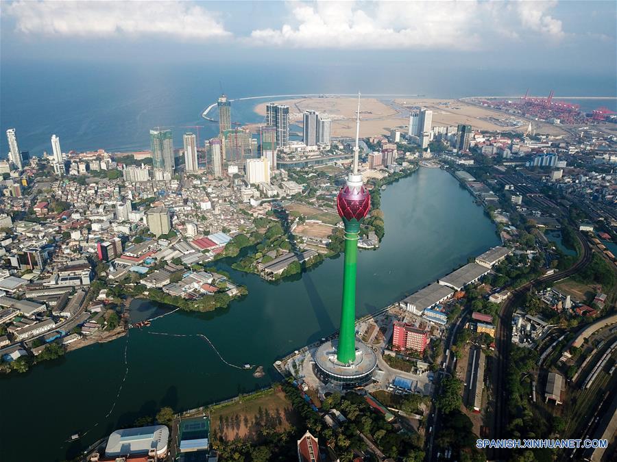 Imagen del 10 de abril de 2019 de una vista aérea de la Torre Loto, en Colombo, capital de Sri Lanka. Bajo la Iniciativa de la Franja y la Ruta, Sri Lanka y China firmaron el acuerdo de la Torre Loto en 2012 para costruir la torre de televisión más elevada de Asia del Sur, con China National Electronics Import and Export Corporation (CEIEC) siendo el contratista general. Para que la torre sea un éxito, tanto los trabajadores chinos como los locales han trabajado arduamente durante a?os. El proyecto será completado más adelante este a?o, y para entonces, la Torre Loto no sólo funcionará como una torre de televisión, sino también como hotel, centro comercial y centro de conferencias. (Xinhua/Guo Lei)
