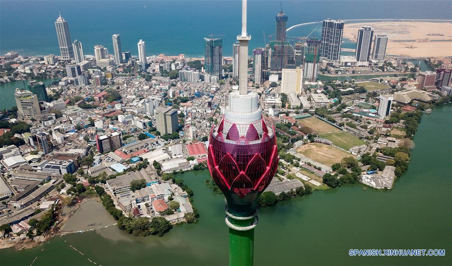 COLOMBO, 13 abril, 2019 (Xinhua) -- Imagen del 4 de abril de 2019 de una vista aérea de la Torre Loto, en Colombo, capital de Sri Lanka.Bajo la Iniciativa de la Franja y la Ruta, Sri Lanka y China firmaron el acuerdo de la Torre Loto en 2012 para costruir la torre de televisión más elevada de Asia del Sur, con China National Electronics Import and Export Corporation (CEIEC) siendo el contratista general. Para que la torre sea un éxito, tanto los trabajadores chinos como los locales han trabajado arduamente durante a?os. El proyecto será completado más adelante este a?o, y para entonces, la Torre Loto no sólo funcionará como una torre de televisión, sino también como hotel, centro comercial y centro de conferencias. (Xinhua/Guo Lei)