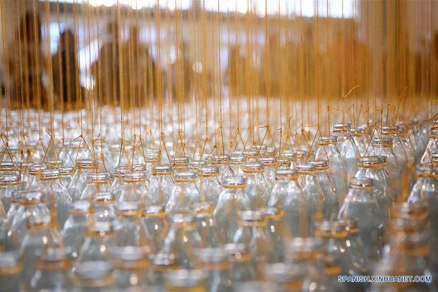 Una obra es exhibida durante la 28 edición de la feria de arte contemporáneo, ArteBa, en la ciudad de Buenos Aires, capital de Argentina, el 13 de abril de 2019. De acuerdo con infomación de la prensa local, la 28 edición de ArteBa cuenta con más de 80 galerías, más de 15 secciones, además de visitas guiadas, y se llevará a cabo hasta el 14 de abril. (Xinhua/Martín Zabala)