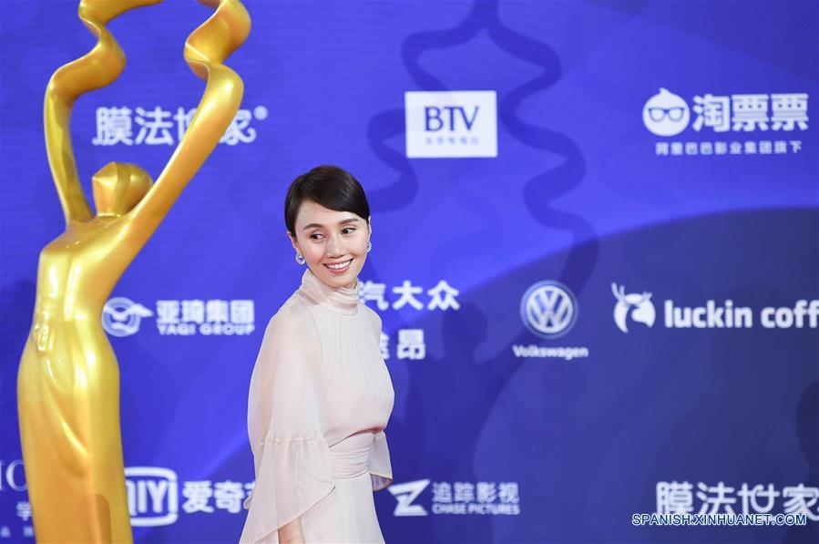 La actriz Yuan Quan camina por la alfombra roja de la ceremonia de inauguración del IX Festival Internacional de Cine de Beijing, en Beijing, capital de China, el 13 de abril de 2019. (Xinhua/Jin Liangkuai)
