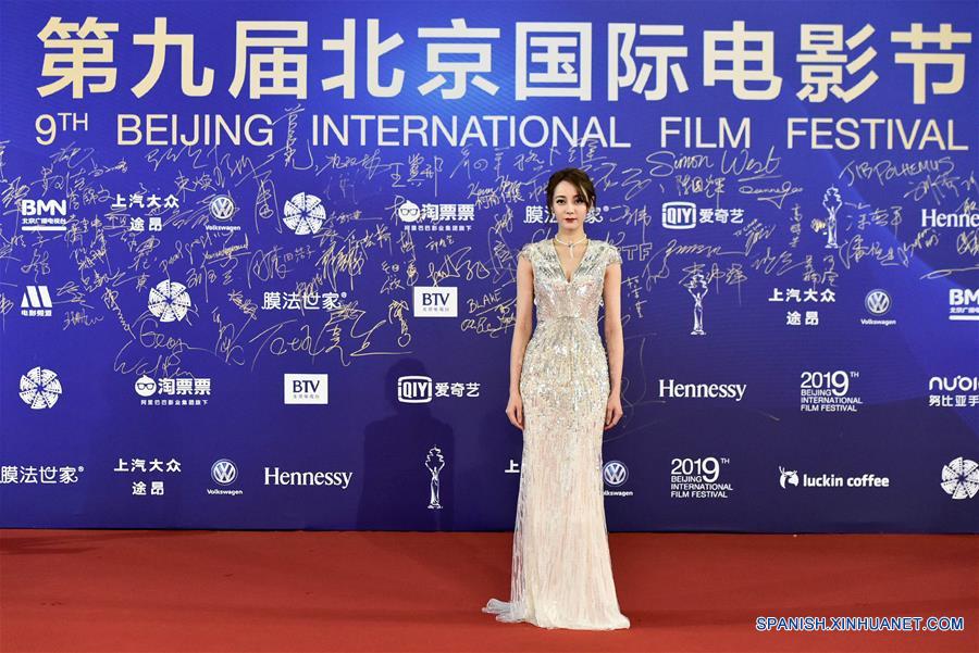 La actriz Dilraba posa en la alfombra roja de la ceremonia de inauguración del IX Festival Internacional de Cine de Beijing, en Beijing, capital de China, el 13 de abril de 2019. (Xinhua/Li He)