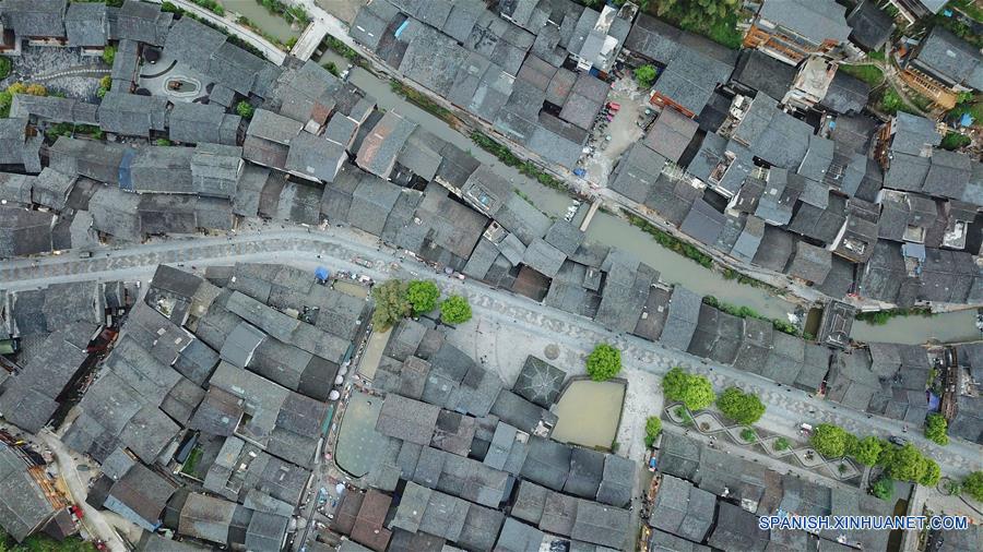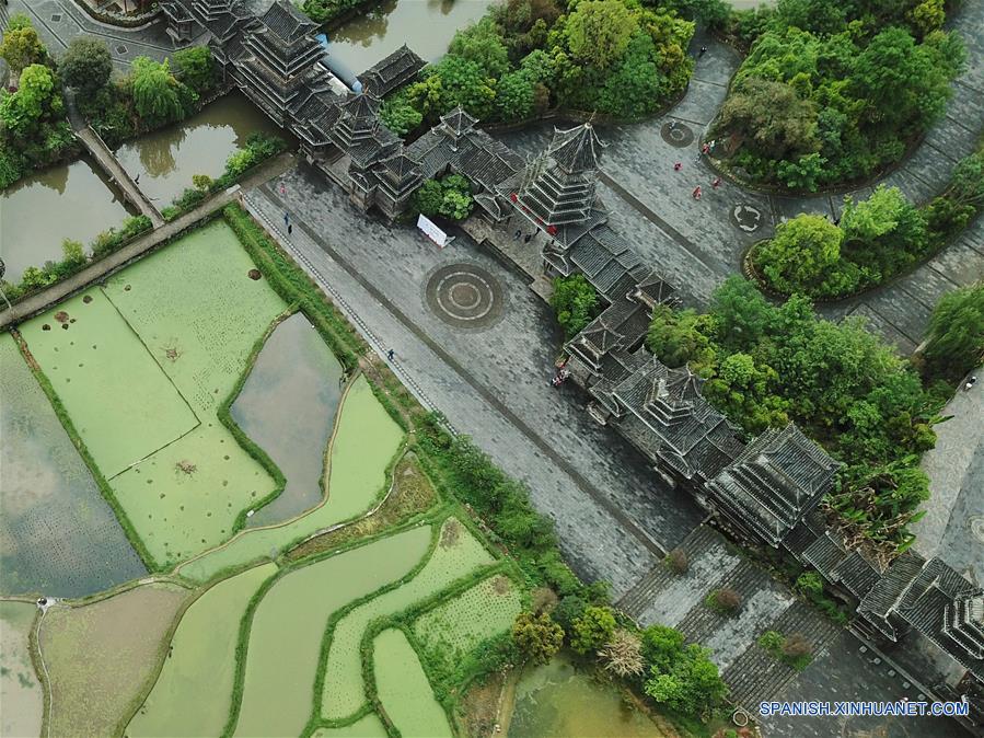 GUIZHOU, 14 abril, 2019 (Xinhua) -- Vista aérea de la villa Dong de Zhaoxing, en el condado de Liping, provincia de Guizhou, en el suroeste de China, el 14 de abril de 2019. (Xinhua/Ou Dongqu)