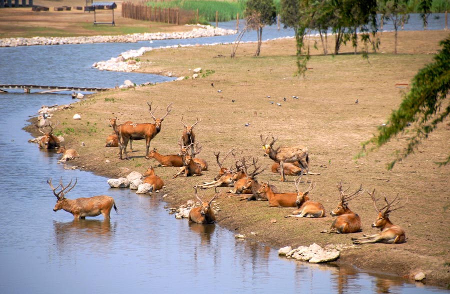 Milu, una especie de ciervo endémica de China que se extinguió en la naturaleza, ahora habita el Parque de Milu de Nanhaizi en el distrito Daxing de Beijing. [FOTO POR GENG FEIFEI / CHINA DAILY]