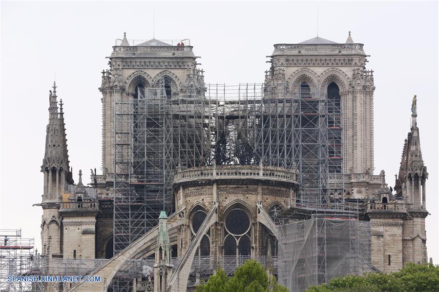 PARIS, 16 abril, 2019 (Xinhua) -- Vista de la da?ada catedral de Notre Dame después de un incendio, en París, Francia, el 16 de abril de 2019. El presidente de Francia, Emmanuel Macron, prometió el lunes reconstruir la catedral de Notre Dame, devastada por un incendio, en un lapso de cinco a?os e hizo un llamado a los franceses para que permanezcan unidos. (Xinhua/Gao Jing)