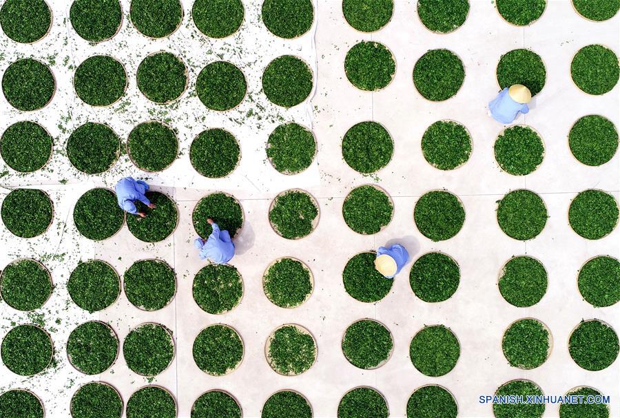 SHANDONG, 17 abril, 2019 (Xinhua) -- Imagen del 15 de abril de 2019 de trabajadores secando hojas de ginkgo, en el condado de Tancheng, provincia de Shandong, en el este de China. (Xinhua/Fang Dehua)