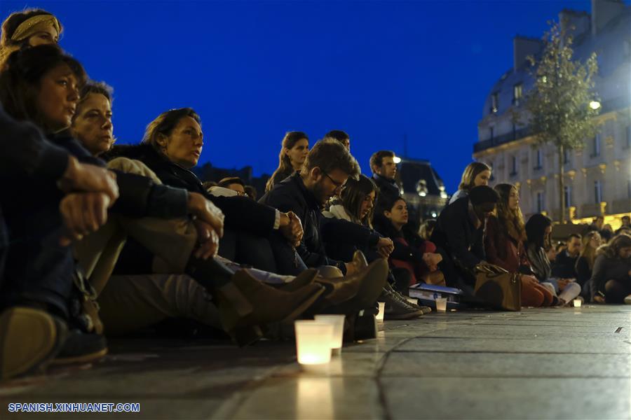 PARIS, 17 abril, 2019 (Xinhua) -- Personas asisten a una ceremonia para rendir tributo a la Catedral de Notre Dame, en París, Francia, el 17 de abril de 2019. Francia lanzará una competencia internacional para redise?ar la aguja de la Catedral de Notre Dame de París que colapsó en el devastador incendio del lunes, anunció el miércoles el primer ministro francés, Edouard Philippe. (Xinhua/Alexandre Karmen)