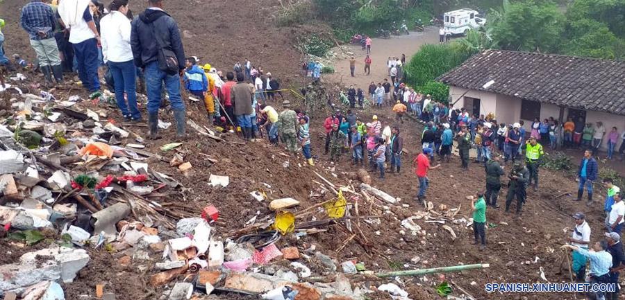 BOGOTA, 21 abr (Xinhua) -- Al menos 14 personas muertas y tres heridas dejó hoy domingo un alud de tierra ocurrido en un barrio en las afueras del municipio colombiano de Rosas, en el departamento de Cauca (suroeste), informó la estatal Unidad Nacional de Gestión del Riesgo de Desastres (UNGRD).