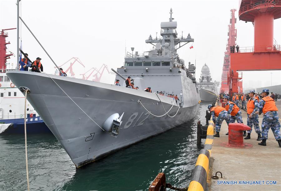 SHANDONG, 21 abril, 2019 (Xinhua) -- La fragata de misiles guiados Almirante Gorshkov de la Marina de Rusia, llega al puerto de la ciudad de Qingdao, provincia de Shandong, en el este de China, el 21 de abril de 2019. Un desfile naval con motivo del 70o aniversario de la fundación de la Armada del Ejército Popular de Liberación de China se celebrará el 23 de abril en Qingdao y en las zonas costeras y aéreas cercanas, informó el sábado un alto oficial de la Marina, Qiu Yanpeng, en una conferencia de prensa. Los eventos conmemorativos multinacionales, que se celebrarán en Qingdao y las zonas costeras y aéreas cercanas del 22 al 25 de abril, contarán con diversas actividades entre las que se incluyen varios seminarios de alto nivel e intercambios culturales y deportivos. (Xinhua/Zhu Ziheng)
