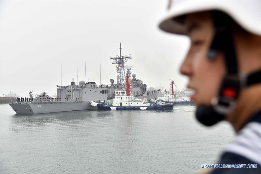 SHANDONG, 21 abril, 2019 (Xinhua) -- La fragata de misiles guiados ROKS Gyeonggi de la Marina de la República de Corea, llega al puerto de la ciudad de Qingdao, provincia de Shandong, en el este de China, el 21 de abril de 2019. Un desfile naval con motivo del 70o aniversario de la fundación de la Armada del Ejército Popular de Liberación de China se celebrará el 23 de abril en Qingdao y en las zonas costeras y aéreas cercanas, informó el sábado un alto oficial de la Marina, Qiu Yanpeng, en una conferencia de prensa. Los eventos conmemorativos multinacionales, que se celebrarán en Qingdao y las zonas costeras y aéreas cercanas del 22 al 25 de abril, contarán con diversas actividades entre las que se incluyen varios seminarios de alto nivel e intercambios culturales y deportivos. (Xinhua/Li Ziheng)