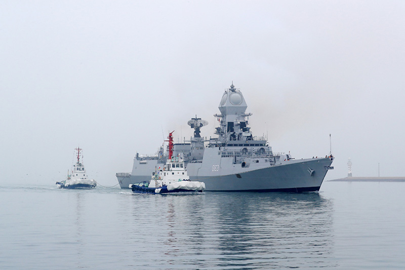 El destructor INS Kolkata de la Armada india arriba a la ciudad portuaria de Qingdao, provincia de Shandong, el 21 de abril del 2019, para unirse a los eventos navales multinacionales que conmemoran el 70 aniversario de la Fundación de la Armada del Ejército Popular de Liberación (PLA, por sus siglas en inglés) de China. Los eventos se celebrarán entre el 22 y el 25 de abril. El 23 de abril habrá un desfile en Qingdao y en las zonas marítimas aleda?as. [Foto: Xinhua]