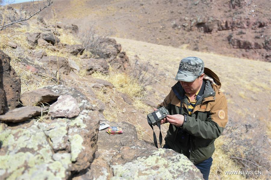 Shuanglong, de la etnia mongola, instala una cámara infrarroja cerca de la desembocadura de una cueva que los lobos pueden habitar, dentro de un valle del Lago Hulun, en Hulun Buir, Región Autónoma de Mongolia Interior, 13 de abril del 2019. Shuanglong, nacido en la década de 1980, es un voluntario que se ha dedicado durante los últimos diez a?os a proteger la vida silvestre en el entorno del Lago Hulun. Gracias a sus esfuerzos, se han podido salvar más de 40 animales en peligro de extinción. Como formas de concientizar a los residentes sobre la protección de la vida silvestre, el infatigable activista ha organizado diversas actividades, incluyendo exposiciones fotográficas y charlas. Motivados por su ejemplo, nuevos voluntarios también han unido a las acciones de protección de la vida silvestre en el entorno del Lago Hulun. (Foto: Xinhua/ Peng Yuan)