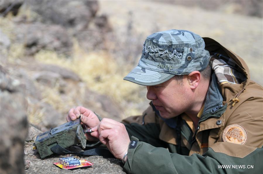 Shuanglong, de la etnia mongola, instala una cámara infrarroja cerca de la desembocadura de una cueva que los lobos pueden habitar, dentro de un valle del Lago Hulun, en Hulun Buir, Región Autónoma de Mongolia Interior, 13 de abril del 2019. Shuanglong, nacido en la década de 1980, es un voluntario que se ha dedicado durante los últimos diez a?os a proteger la vida silvestre en el entorno del Lago Hulun. Gracias a sus esfuerzos, se han podido salvar más de 40 animales en peligro de extinción. Como formas de concientizar a los residentes sobre la protección de la vida silvestre, el infatigable activista ha organizado diversas actividades, incluyendo exposiciones fotográficas y charlas. Motivados por su ejemplo, nuevos voluntarios también han unido a las acciones de protección de la vida silvestre en el entorno del Lago Hulun. (Foto: Xinhua/ Peng Yuan)