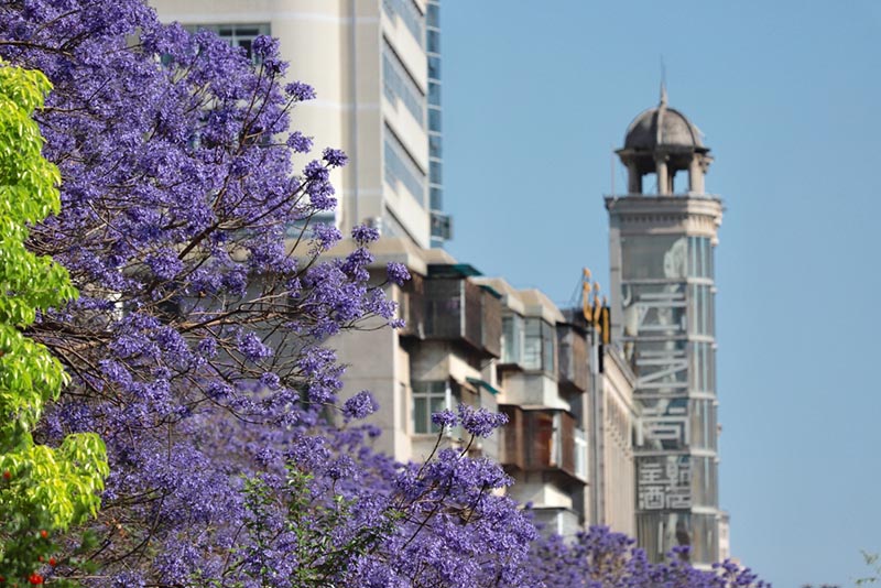 La jacaranda azul en flor atrae a turistas de todo el país, que llegan a la ciudad de Kunming en la provincia de Yunnan, suroeste de China, cada abril. [Foto por Xie Quanming / proporcionada a chinadaily.com.cn]