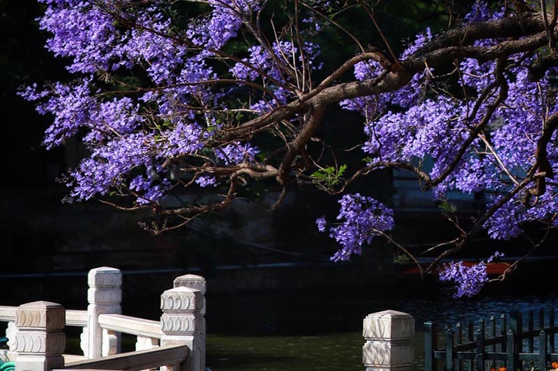 La jacaranda azul en flor atrae a turistas de todo el país, que llegan a la ciudad de Kunming en la provincia de Yunnan, suroeste de China, cada abril. [Foto por Xie Quanming / proporcionada a chinadaily.com.cn]