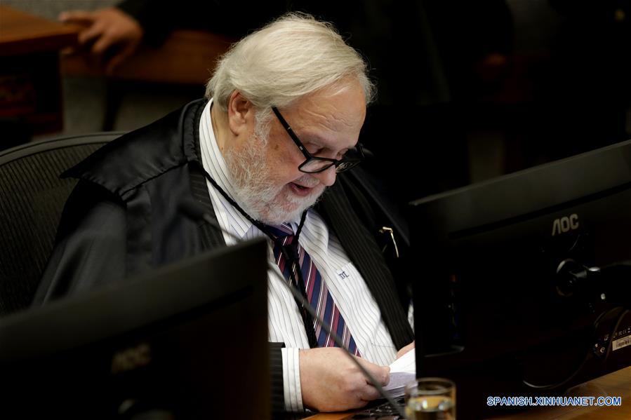 Felix Fischer, juez relator del Superior Tribunal de Justicia (STJ) de Brasil, participa durante el juicio del ex presidente brasile?o Luiz Inácio Lula da Silva, en Brasilia, Brasil, el 23 de abril de 2019. El juez relator Felix Fischer, del STJ de Brasil, propuso el martes en su voto reducir la condena del ex presidente Luiz Inácio Lula da Silva, preso en Curitiba, de 12 a?os y un mes de prisión a ocho a?os y 10 meses de prisión. (Xinhua/Lucio Tavora)