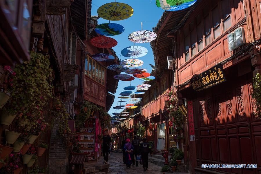 YUNNAN, 24 abril, 2019 (Xinhua) -- Imagen del 22 de abril de 2019 de turistas visitando la antigua localidad de Lijiang, provincia de Yunnan, en el suroeste de China. De acuerdo con la autoridad local, el turismo comenzó a calentarse cuando se puso en marcha un servicio de tren más rápido entre Lijiang y la capital provincial Kunming a principios de 2019. Durante la primera temporada, Lijiang dio la bienvenida a 12.325 millones de visitantes y registró un ingreso total de 25.637 mil millones de yuanes, hasta el 21.5 por ciento y el 15.13 por ciento respectivamente respecto al a?o anterior. (Xinhua/Hu Chao)