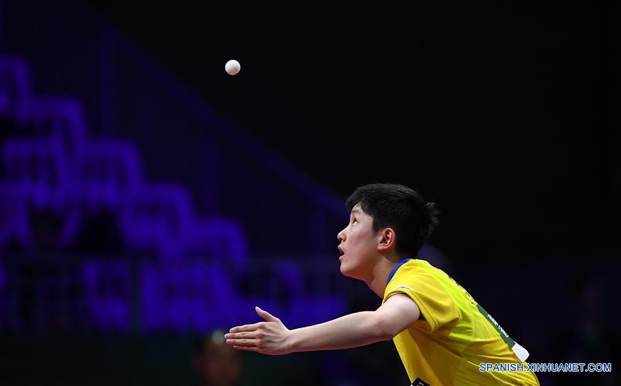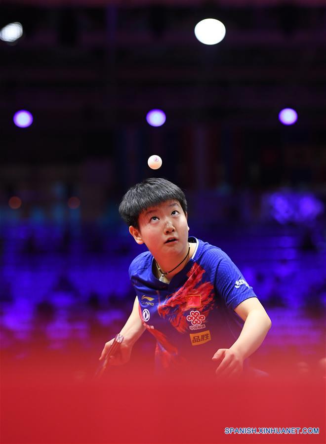 BUDAPEST, 24 abril, 2019 (Xinhua) -- Sun Yingsha, de China, compite durante el partido individual femenil de la ronda de dieciseisavos de final del Campeonato Mundial de Tenis de Mesa de la Federación Internacional de Tenis de Mesa (ITTF, por sus siglas en inglés) 2019, ante Ito Mima, de Japón, en Budapest, Hungría, el 24 de abril de 2019. (Xinhua/Lu Yang)