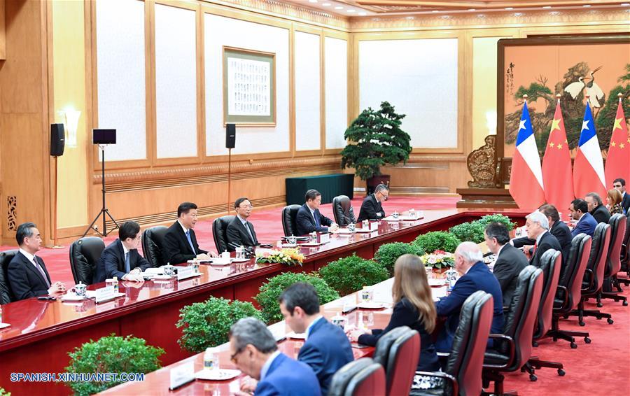 BEIJING, 24 abril, 2019 (Xinhua) -- El presidente chino, Xi Jinping, y su homólogo de Chile, Sebastián Pi?era, sostienen conversaciones antes del II Foro de la Franja y la Ruta para la Cooperación Internacional en Beijing, capital de China, el 24 de abril de 2019. (Xinhua/Yin Bogu)