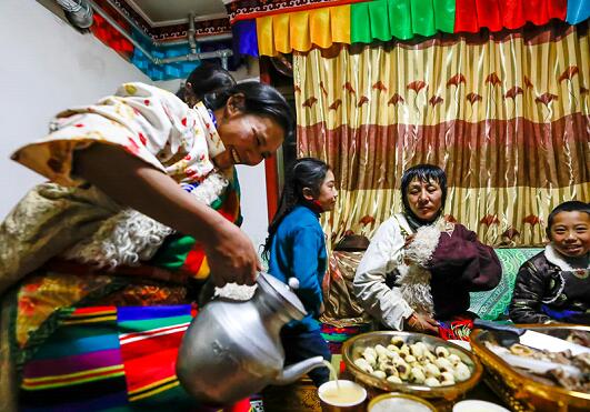 El 3 de febrero de este a?o, que coincide con el 29 de diciembre del calendario tibetano, la familia de Lunan, quienes viven en la comunidad "Casa Feliz" en Ali, Tíbet, celebró el comienzo del primer A?o Nuevo Tibetano después de su reubicación. Toda la familia se reunió para comer juntos el “Gutu”. Fotos de Diario del Pueblo