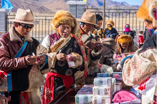 El 17 de enero de 2019, se celebró la ceremonia de reparto de dividendos en la aldea Qianggu en el pueblo Wuma del condado Gaize en Ali, Tíbet. En 2018, la cooperativa económica colectiva de la aldea Qianggu ganó un total de 5,568 millones de yuanes. Fotos de Diario del Pueblo