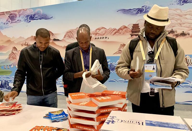 La imagen muestra a los periodistas extranjeros en el Centro de Prensa del II Foro de de La Franja y La Ruta para la Cooperación Internacional, el 23 de abril. Foto de Han Xiaoming, Diario del Pueblo.