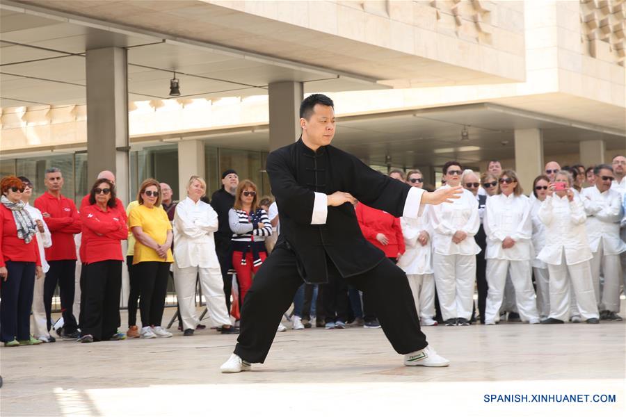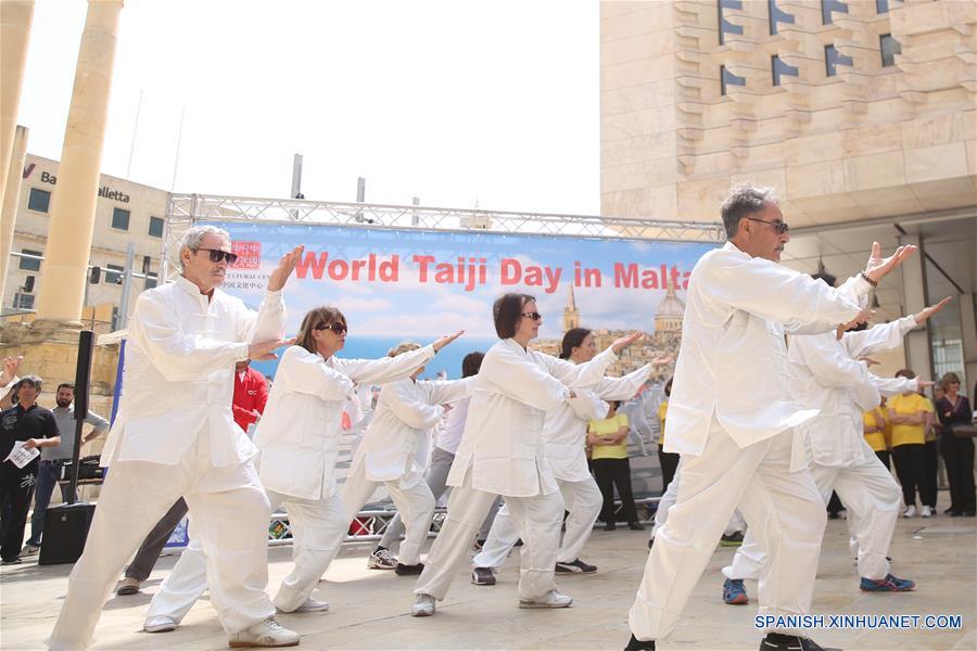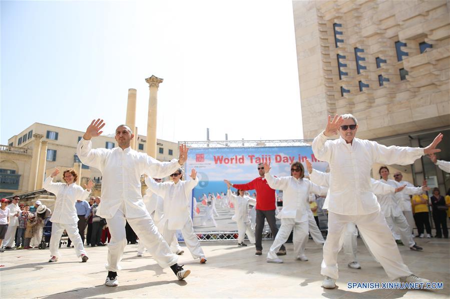 LA VALETA, 27 abril, 2019 (Xinhua) -- Un grupo de personas practican Taiji, en La Valeta, capital de Malta, el 27 de abril de 2019. De acuerdo con información de la prensa local, el Día Mundial de Taiji (Tai Chi) se celebró el sábado en La Valeta, con una serie de presentaciones de Taiji chino. (Xinhua/Yuan Yun)